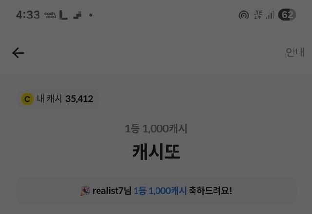 🍒캐시또 3등 100캐시랑 캐시닥 출첵에서 대박 10000포인뜨🍒
