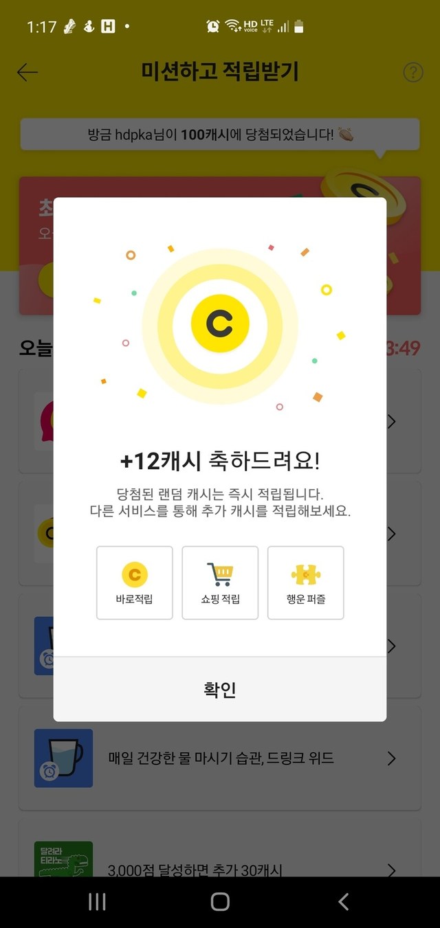 오늘의 성공 캐시