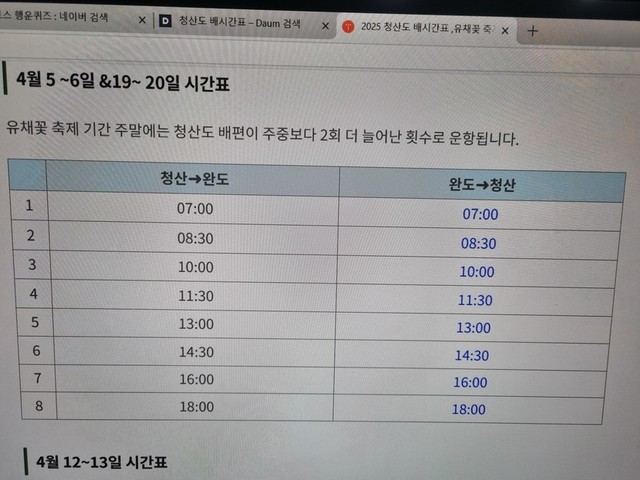 완도에서 청산도배시간표