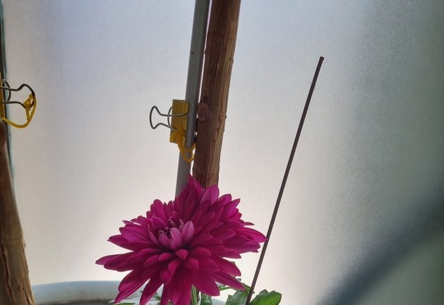 고목나무아래에서 활짝핀 국화꽃