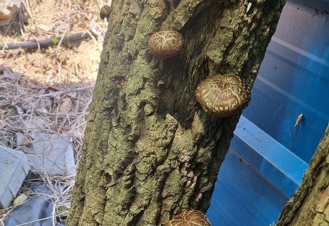 꽃구경도 하고🍄표고버섯도 따고 고기도 먹고 미세먼지로 돼지고기😋😛