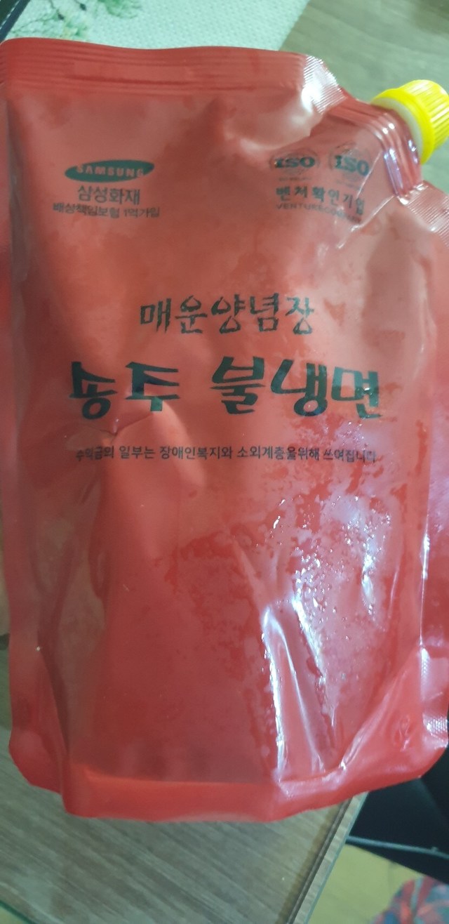 매년 여름마다 얘들이 찾아서 쟁여놓는 송주불냉면.소스만 맛있는줄 알았는데 육수도 담백하고 시원하고 면도 쫄깃하고 맛있어요.소스는 한스프넣으면 시원하고 얼큰하고 두스푼넣으면 알싸합니다.여름전에 꼭 사두세요.육수는 하나는 냉동실.하나는 냉장실이렇게 반씩 섞어먹으면 좋아요.짱