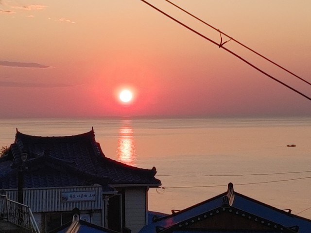 아름다운 노을과 지평선 위 석양