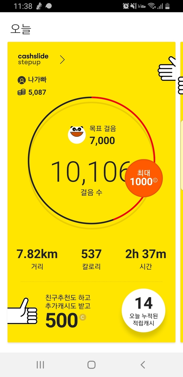 오늘은 14캐쉬네요