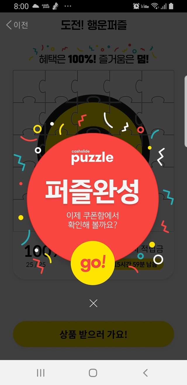 100캐쉬 퍼즐완성했어요