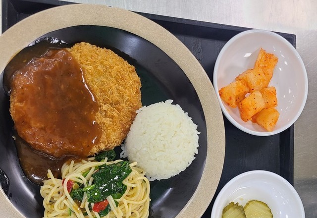 간만에 돈까스및스파게티밓당근스프한식은 조기구이에~~