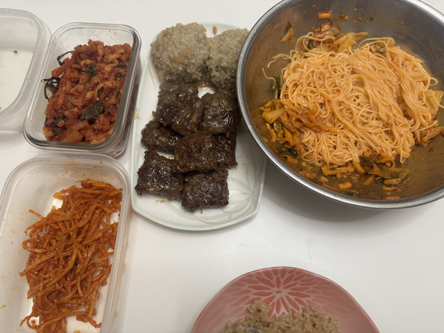 찹쌀떡갈비와 일반떡갈비🥩김치말이 비빔국수로 마무리😄