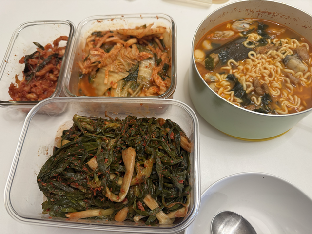 돼지고기 달달 볶고 탱글탱글 굴 넣어서 짬뽕 라면으로 해장🍜