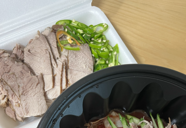 여름하면 시원한 밀면만 생각나는건 왜죠? 한점만 먹기 아쉬워 함께 주문한 맛보기 수육!청양고추와 함께 먹으면 햄복해요🫶