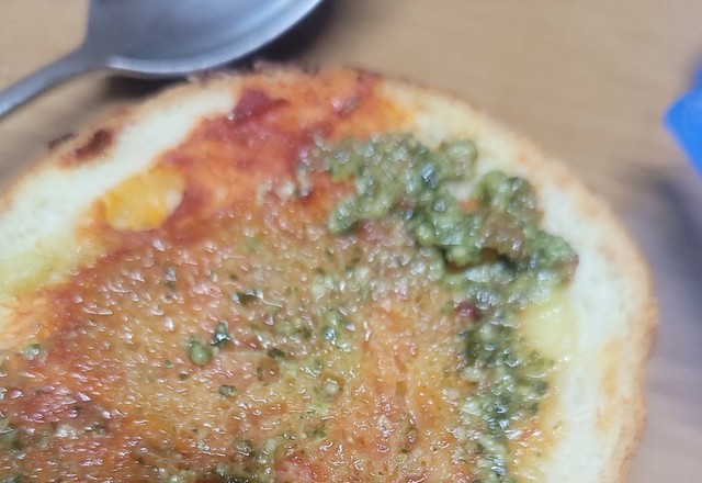 치즈빵에 토마토소스바르고얼려둔 바질 한조각씩 올려에어프라이어에 돌려 먹었네요.맛있더라구요.남은 빵들 요렇게 먹어야겠네요.