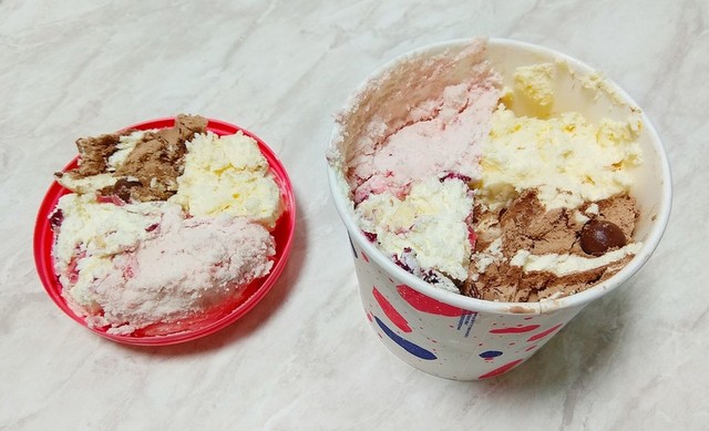 포인트 모은걸로 배라 쿼터 주문해서 열었는데뚜껑의 1/5 정도가 붙어있네요~ㅋㅋ자동분배 시스템인가....ㅎ