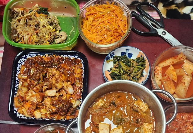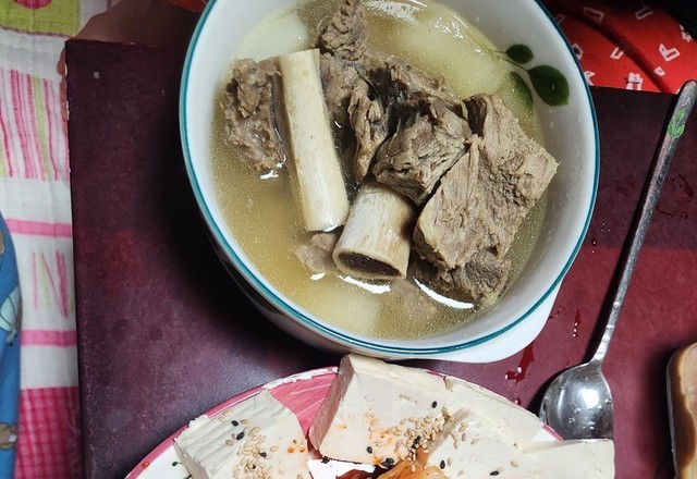 집에서 끓인 갈비탕과 잘익은 김치