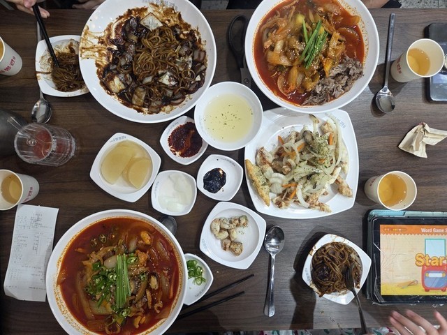 오늘 저녁은 비가오니 짬뽕이 땡겨서~동네 중화요리점 왔어요.고기짬뽕인데. 기름이 좀 많긴해요 ㅋ큰딸과 막둥이는짜장면 곱빼기 시켜서 둘이 나눠 먹었죠.식후에 커피마시러~^^입이 심심해 하는 막둥이는딸기마카롱 시켜주고.아아한잔하고 들어갈까 합니다.오랜만에 캐피에 글 올려보네요.