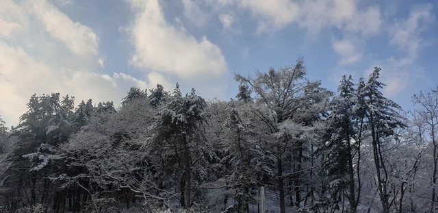 눈덮힌 산과 하늘
