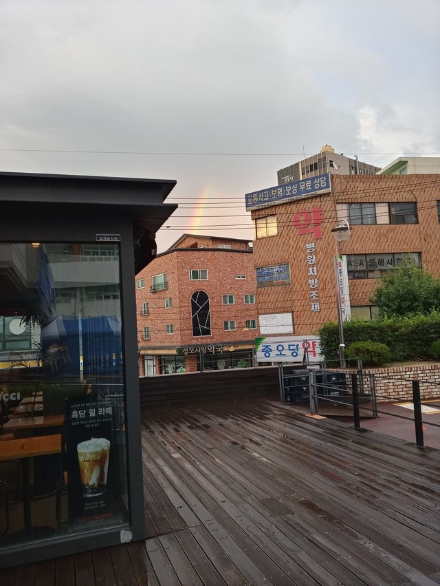 차한잔 하다가 우연히무지개를 보게되어 ''찰칵..