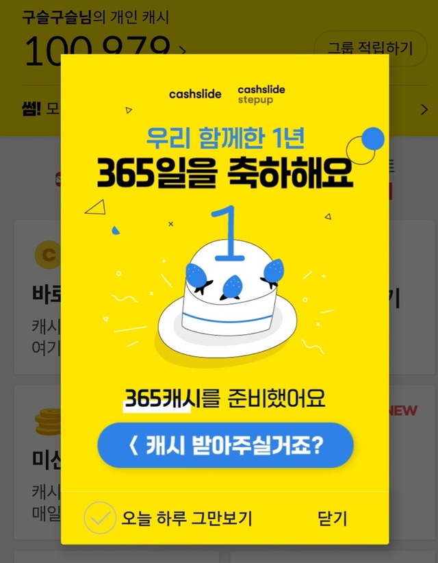 🍒 앱테크를 언제부터 했더라??? 하고있을 무렵캐피가 365일이 되었다고 알려주며 365캐시를 선물해주었네요🍒 우연한 계기로 시작했는데 1년간 얼마쯤 되었을까? 앱테크를 모아 보았어요먼저 🥕🥕 캐피🥕🥕🥕🥕토스🥕🥕🥕🥕OK 케시백🥕🥕🥕🥕캐시워크🥕🥕🥕🥕그외 ~~🥕🥕🥕🥕 기타등등으로 20만원쯤... 🍒 1년 365일동안 저는 약 80여만원의 수입이 생겼어요그만두고 싶어도 그만두지 못하는 이유가 생겼네요앞으로는 시간을 많이 할애할 수 없어서 적당한 선에서 하려고합니다글은 잘 올리지 못하고 댓글 잘 달아드리지 못해도 구독자님들 캐시가 쌓일때