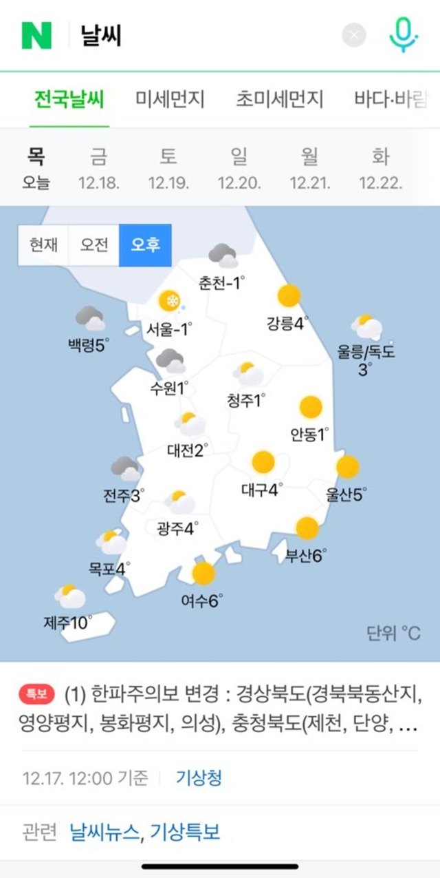 목요일 오후 날씨🤗🤗🤗