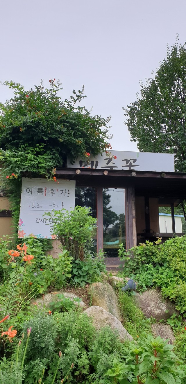 부슬부슬 비오는날 친구들과함께 파주 메주꽃 한정식집 갔는데 손님이 꽉찼네요 음식도 맛나고 깔끔하고 경치도 넘좋았어요 추천합니다