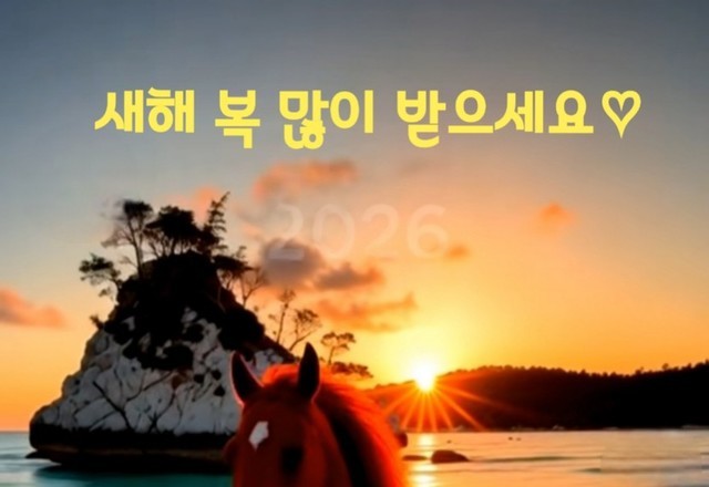 2 다사다난했던 25년이 추억 속으로 사라졌습니다. 끝은 또다른 시작이라 하죠. 병오년(丙午年) 말띠 해🌞가 밝았습니다.희망찬 새해를 설계하면서 26년도 복락(福樂)하십시요. 새해🌞 복 많이 받으세요. 세월은 쏜살같고 유수와 같다더니 벌써 25년 을사년(乙巳年) 푸른 뱀의 해가 저물었고 26년 병오년(丙午年) 말띠 해가 물속에서 뜨겁게 솟구칩니다.찬란하게 떠오르는 태양의 정기를 받고자 해🌞보자! 새해에도 한 살씩 드릴테니 많이 묵었다고 남 주지 마시고 꼭 챙기시기 바랍니다.작년에 대청호 둘레길과 제주도 둘레길을 완보(完步)할려고 했었는