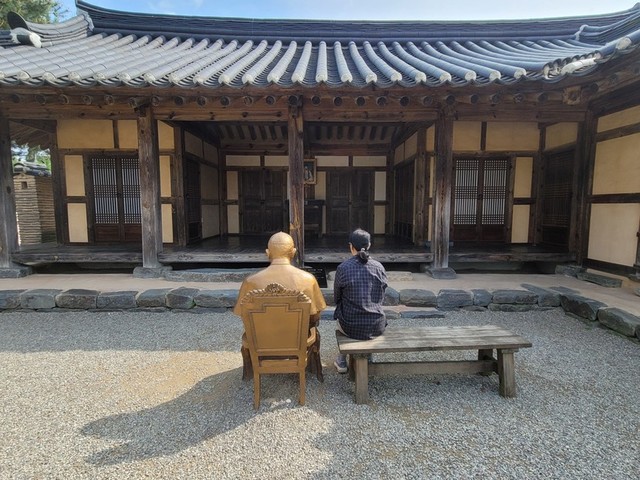 솔뫼성지에 있는 교황님 동상의 뒷모습. 편히영면하시길
