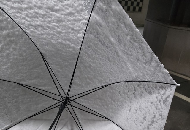 우산에 오분만에 쌓인 눈~♡