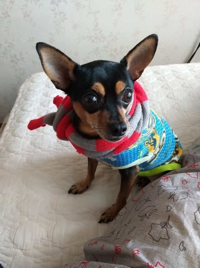 목도리 둘러줬더니 벌써외출 기대중🐕잠깐 안겨서 세탁소만 후딱 다녀오자ㅋㅋ