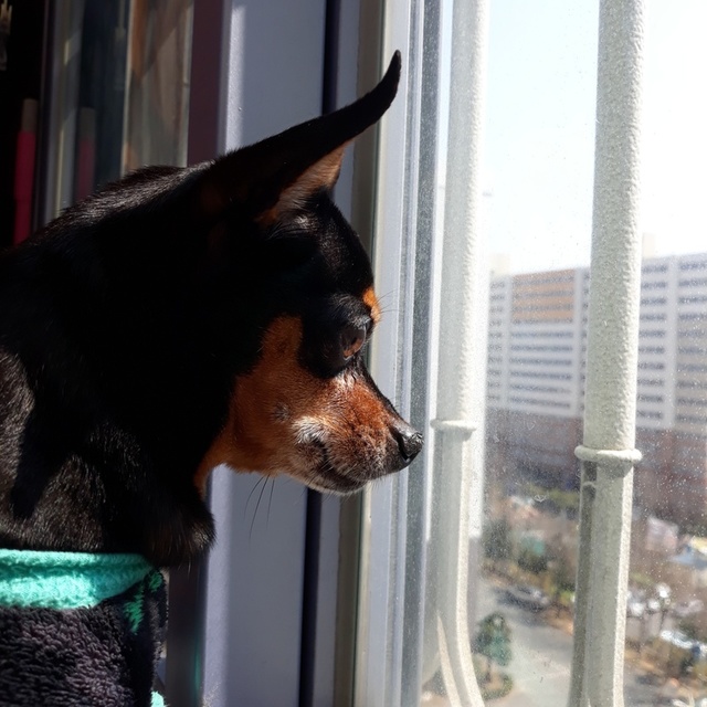 베란다 넘어 바깥구경하고있는 깜댕밖에 나가고싶은가봐요.매일 새로운 세상인 바깥세상😁가까히 가서 사진을 찍어도 쳐다도 안보고 바깥만 주시하네요😂창이 더러워서 문 열어줬어요늘 이시간에 한번씩 사람 없는 한적한 곳에 가서 햇볕쬐고 들어왔는데 오늘은 나갈 생각이없어보이고 가자고