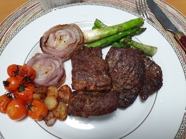 14,000원 스테이크 키트를 주문해서 에어프라이어로 만들어 낸 맛있는 일욜 저녁메뉴입니다~