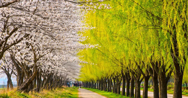 0 여기에 2.5km 구간에 걸쳐 식재된 1000여 그루의 버드나무가 연둣빛 물결을 더하며, 벚꽃과 대비되는 풍경을 선사한다.예로부터 저수지 제방에는 흙의 유실을 막기 위해 버드나무를 많이 심었는데, 합덕제 역시 전통적인 풍경을 간직하고 있다.