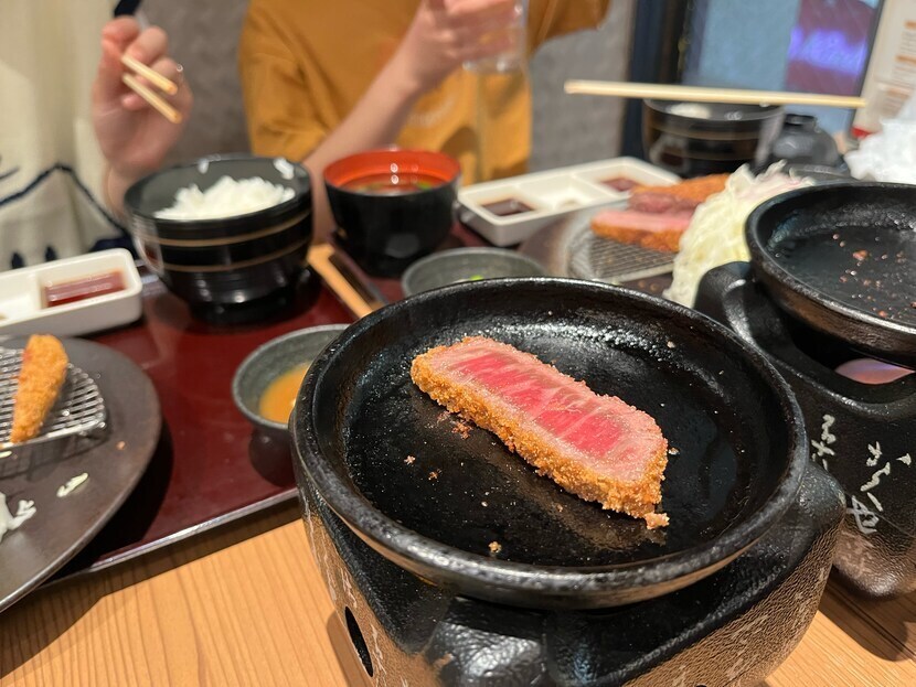 23.05.11 45 읽음 와규가츠 좋다좋아 구독하기 2 4 콘텐츠의 수익 1 교토에서 맛본 와규카츠에요~ 👍 입에서 살살 녹더라는~~먹기까지 우여곡절이 있었지민 보상해주듯이 맛있었어요 ㅎ한점이 살짝 구워서 와사비랑 한번, 소금에 한번, 카레에 한번, 마에 한번. 찍어먹는 재미도 있었어요 ㅎㅎ 체인점이라 일본 어디서든 먹을 수 있는 것 같았는데 이름은 전혀 기억 안나는….😭 4 0 / 300 입력