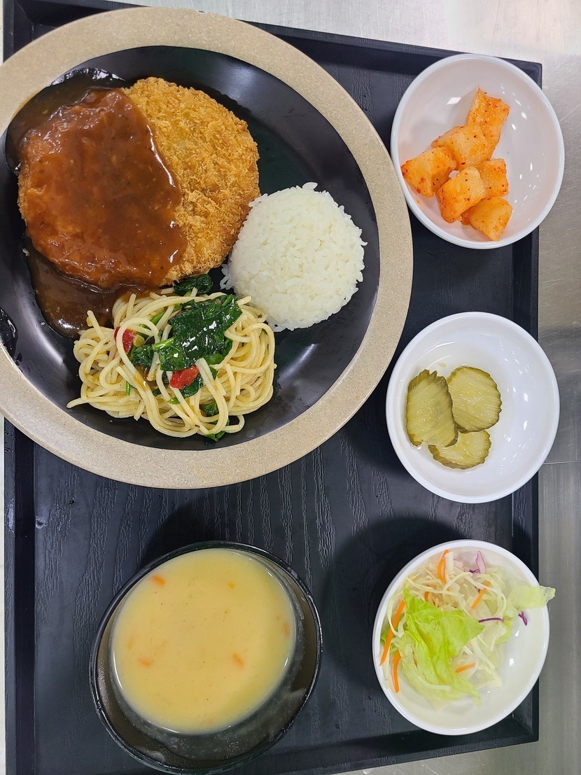 간만에 돈까스및스파게티밓당근스프