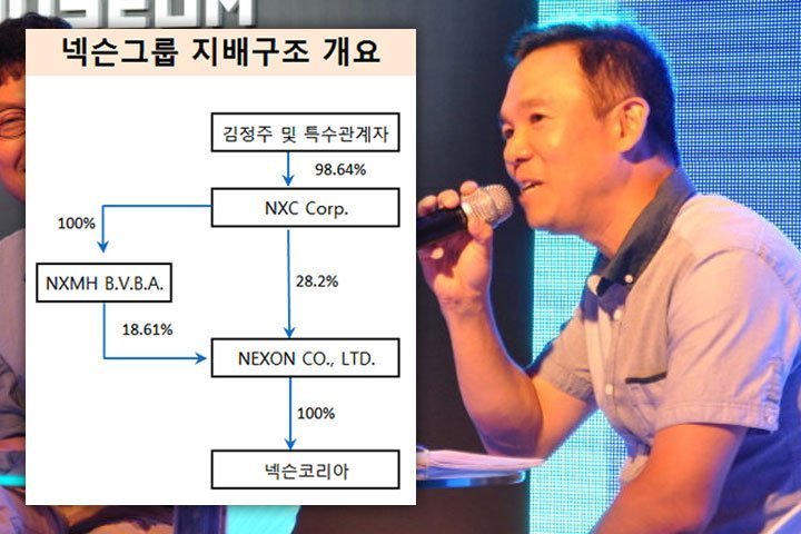 NXC는 사실 김정주 대표의 개인 회사라 봐도 무방하다. 김정주 대표가 67.49%, 그의 아내 유정현 감사가 23.43%의 지분을 보유하고 있기 때문이다. 여기에 그의 개인 회사 와이즈키즈의 보유 지분 1.72%를 합치면 김 대표 일가의 지분율은 69.21%에 달한다.