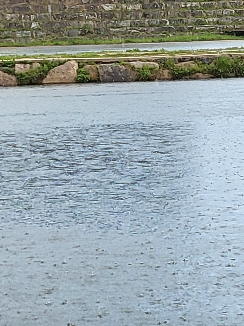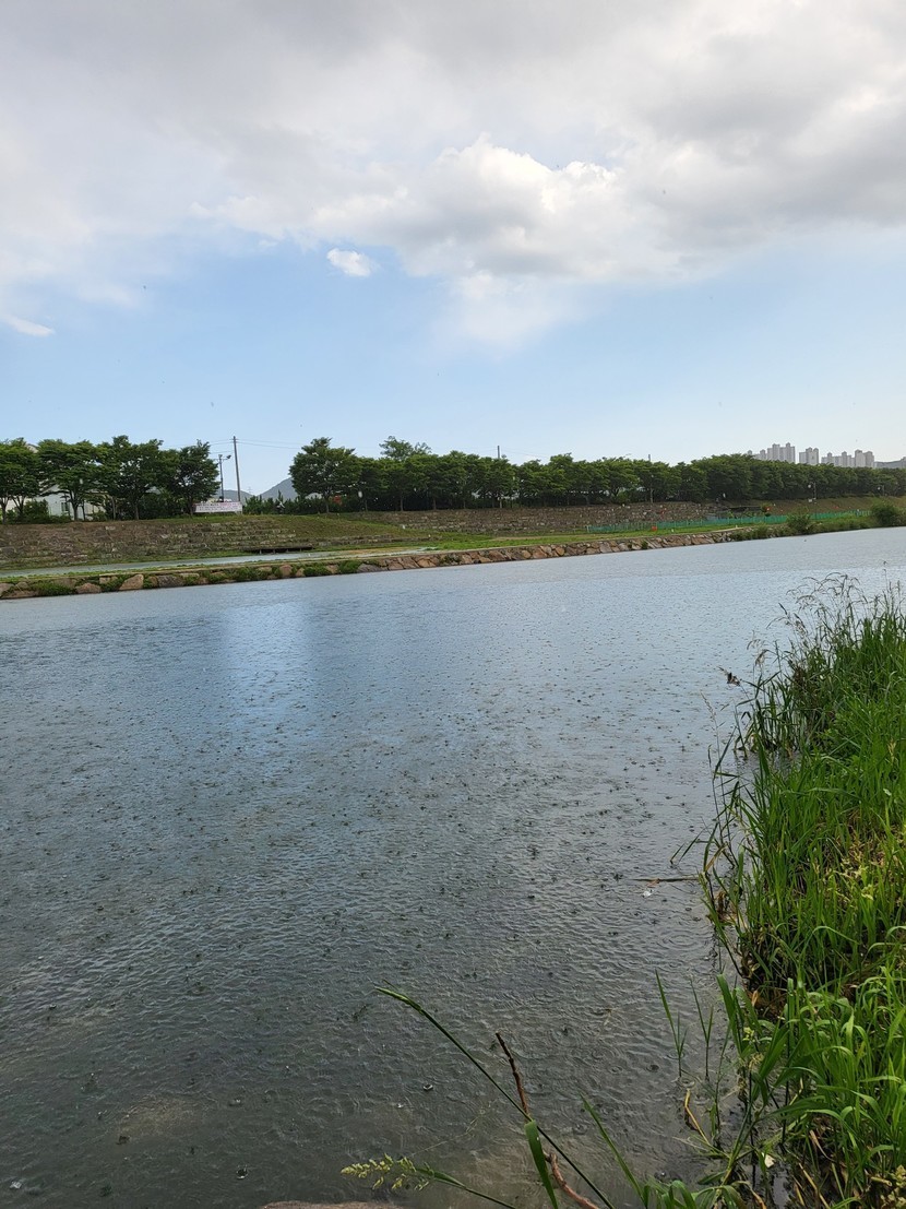 비 맞는 강물
