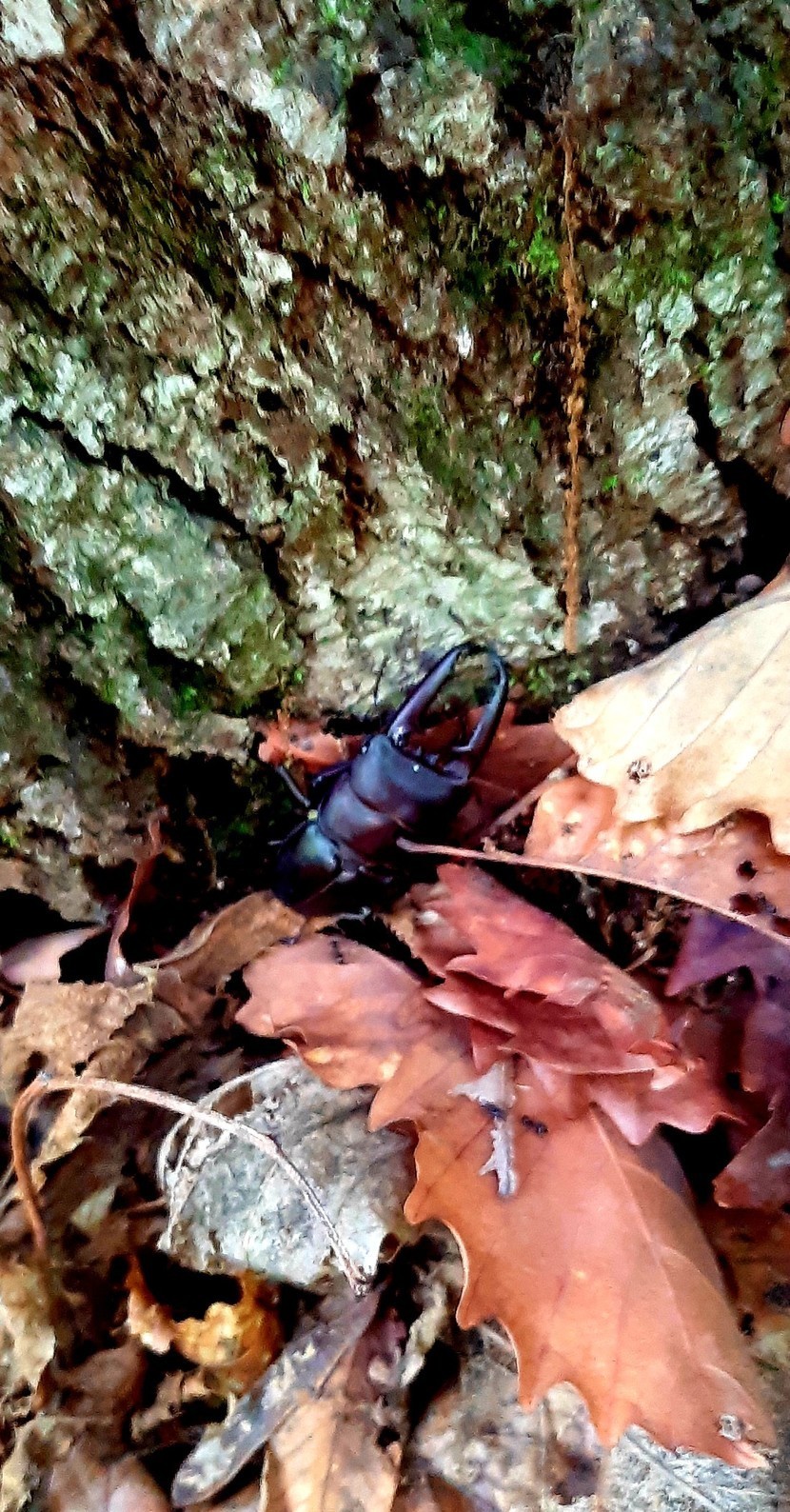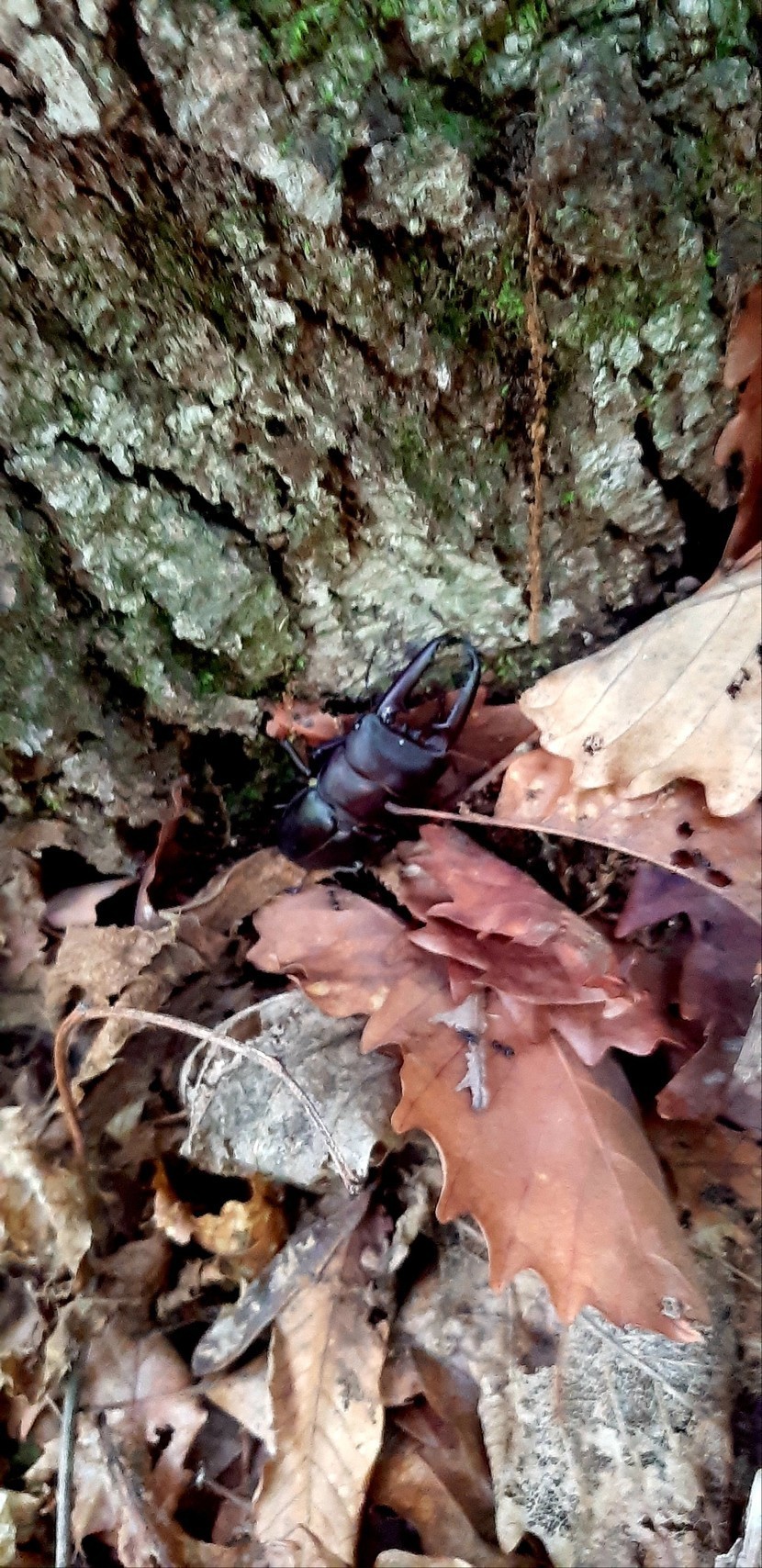 산책을 하다 우연히 사슴벌레를 발견하였다