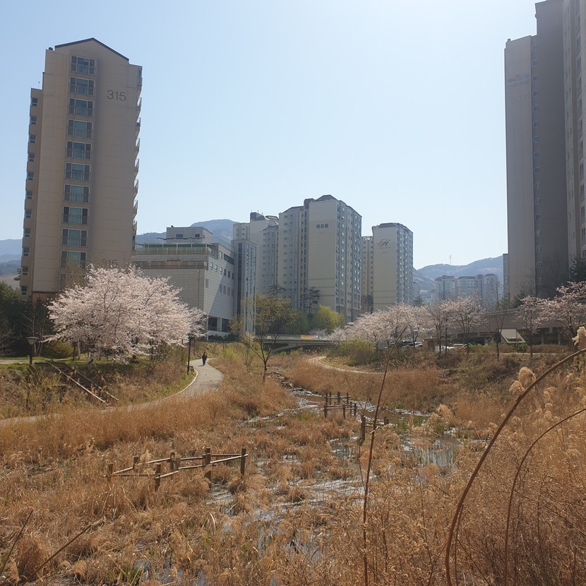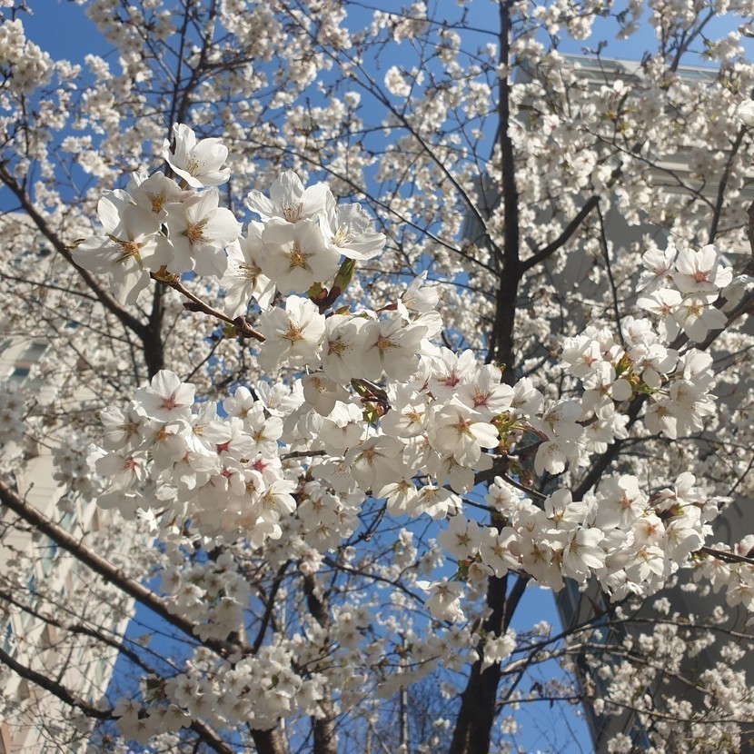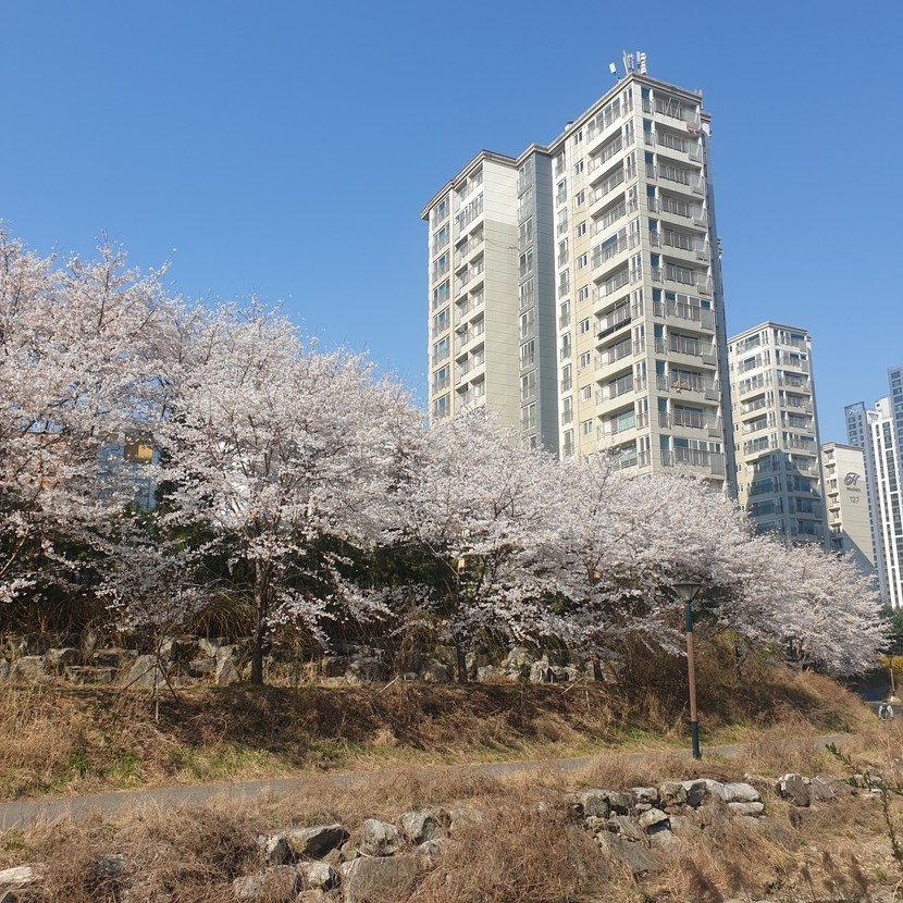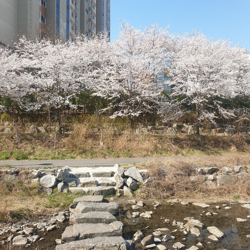 봄을 만끽하며 동네한바퀴 했습니다^^ 실개천에 핀 노란 개나리와 하얀 팝콘 같이 만개한 아름다운 벚꽃에 사회적 거리두기 등 코로나 사태에 지쳤던 마음이 조금은 편안해집니다. 그래도 아직 끝난 게 아니니 아무리 야외라도 마스크를 필수로 하고, 지나가시는 분들과 일정한 거리를 두면서 걸었답니다.
