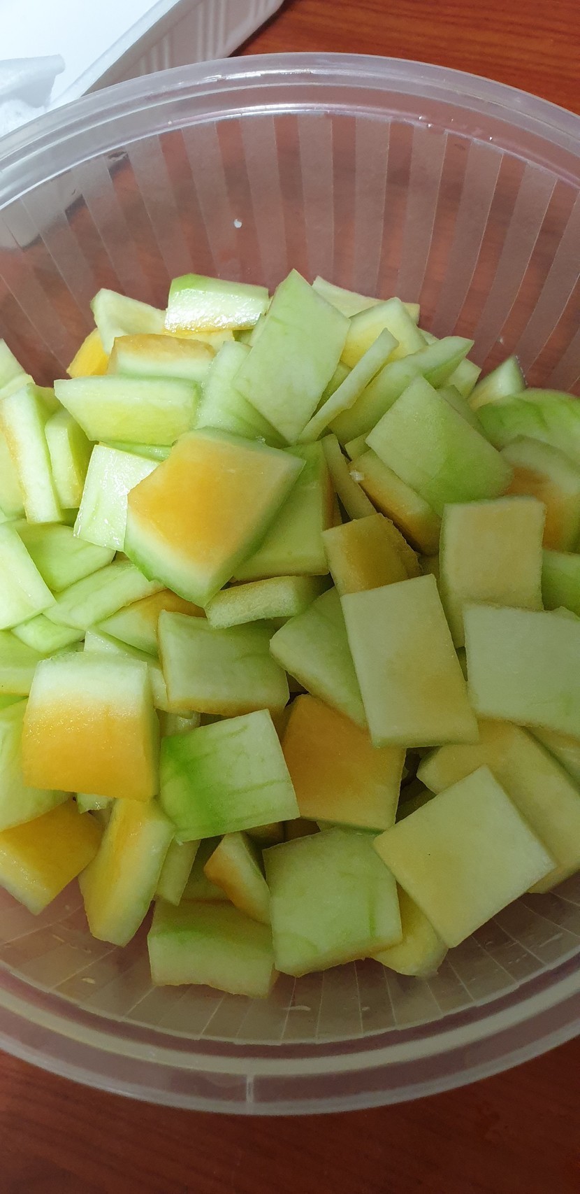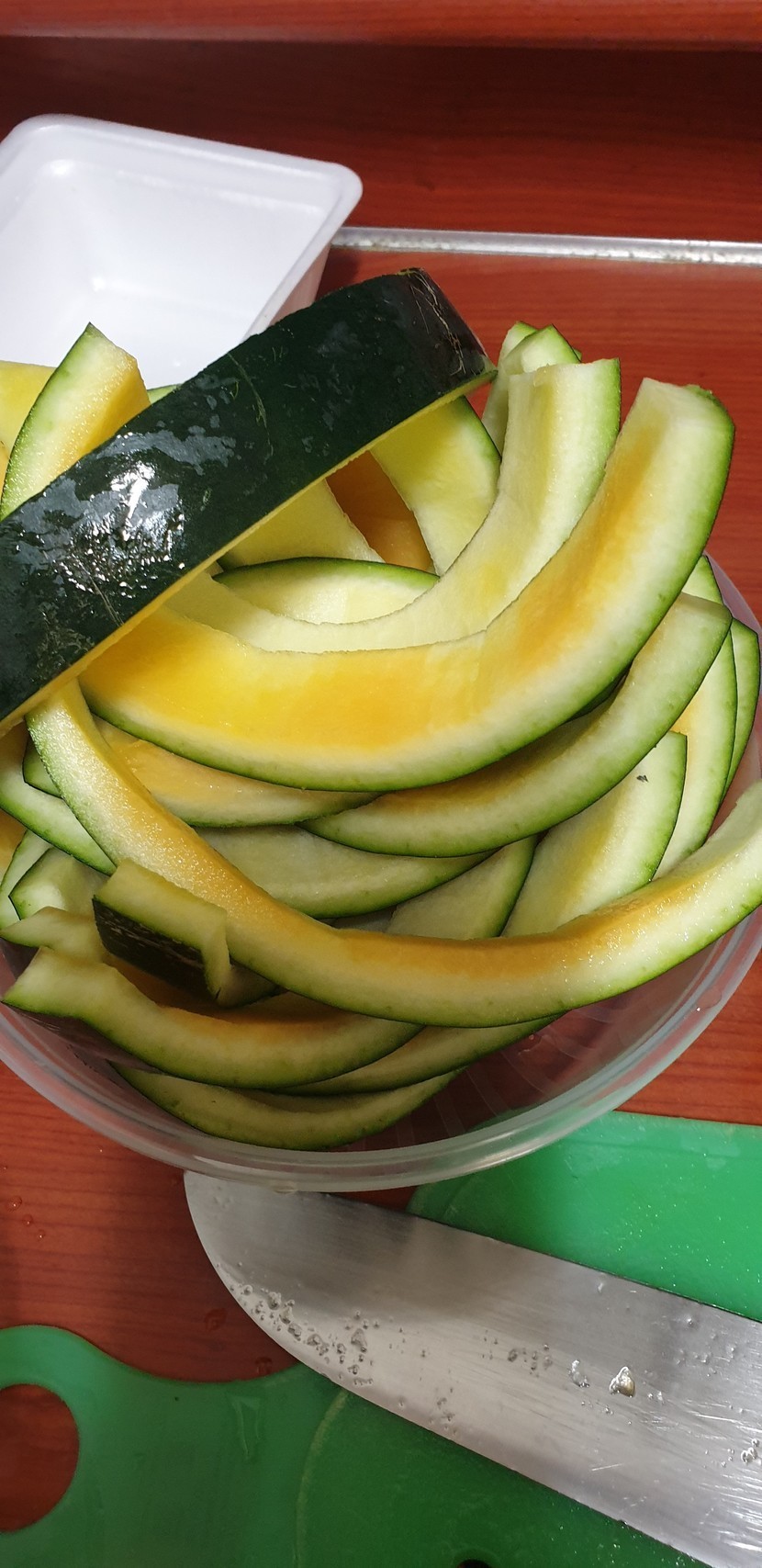 23.06.10 147 읽음 망고수박을 샀어요 ksschris 구독하기 4 10 콘텐츠의 수익 6 올해 첫 망고 수박을 사 보았습니다껍질은 겉껍질을 벗겨서 무침을 해요 일단 절여 두었습니다. 원래는 체를 썰어서 하는데 오늘은 다리가 아파서 그냥 듬성듬성 썰어 싸요 10 0 / 300 입력