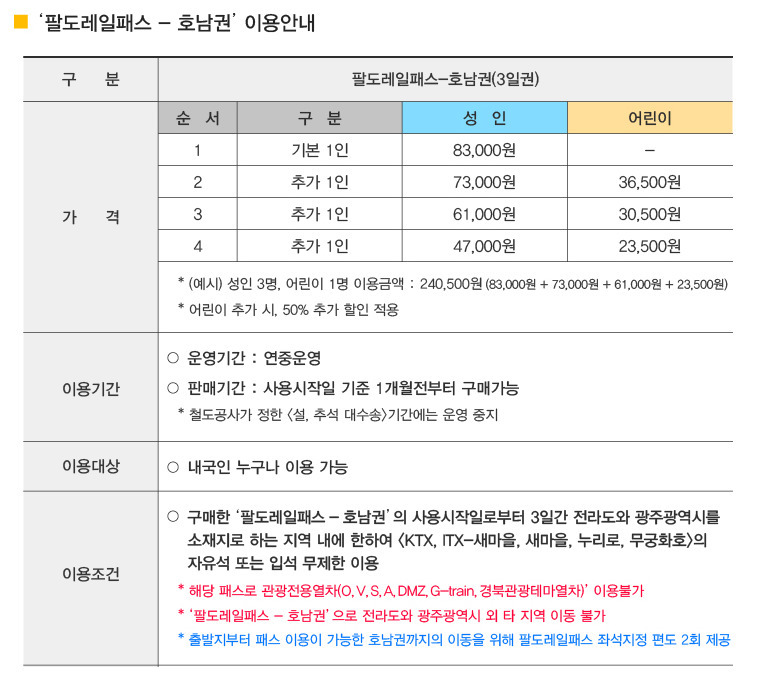 3. 팔도 레일패스-호남