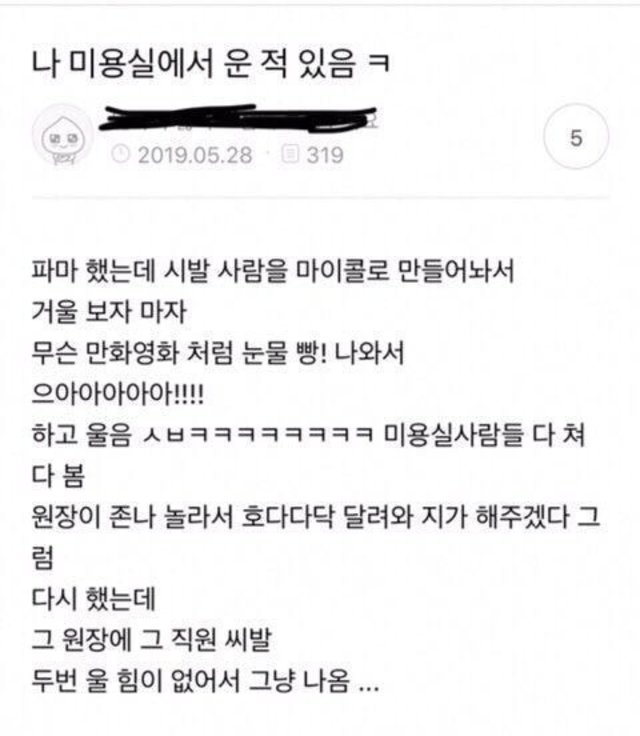 나 미용실에서 운 적 있음