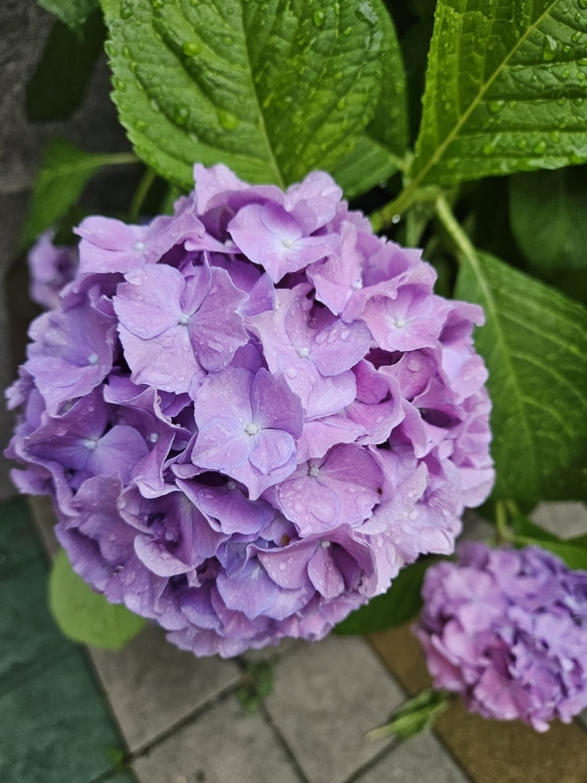 비 맞은 보라수국