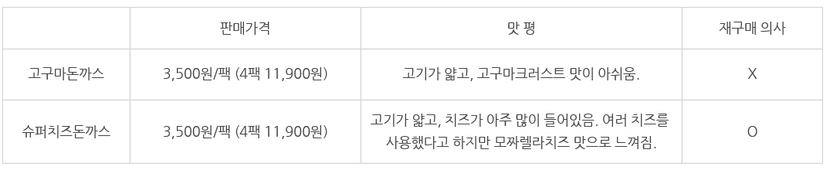 고구마돈까스는 핵심 재료인 고구마크러스트가 별로여서 실망스러웠지만 슈퍼치즈돈까스는 치즈도 맛있고 양도 많고 맛있게 잘 먹었네요 :-)슈퍼치즈돈까스는 다음 번 행사 때도 몇 장 구입하고 싶어요!혹시 고구마돈까스와 치즈돈까스 중에 고민하고 계신다면 치즈돈까스를 추천드립니다 ♡