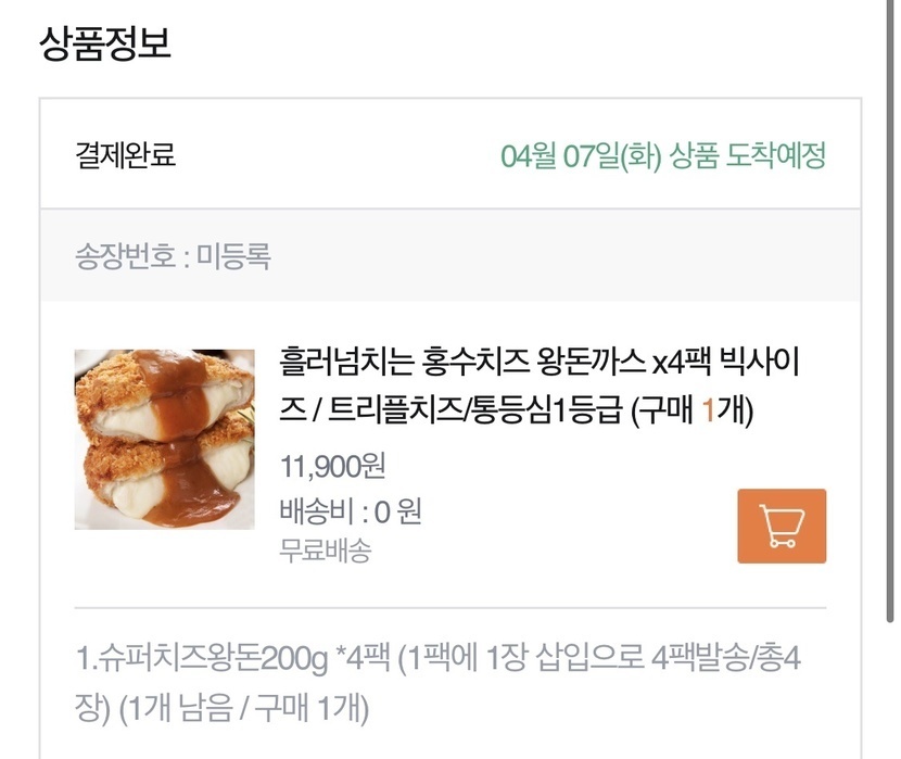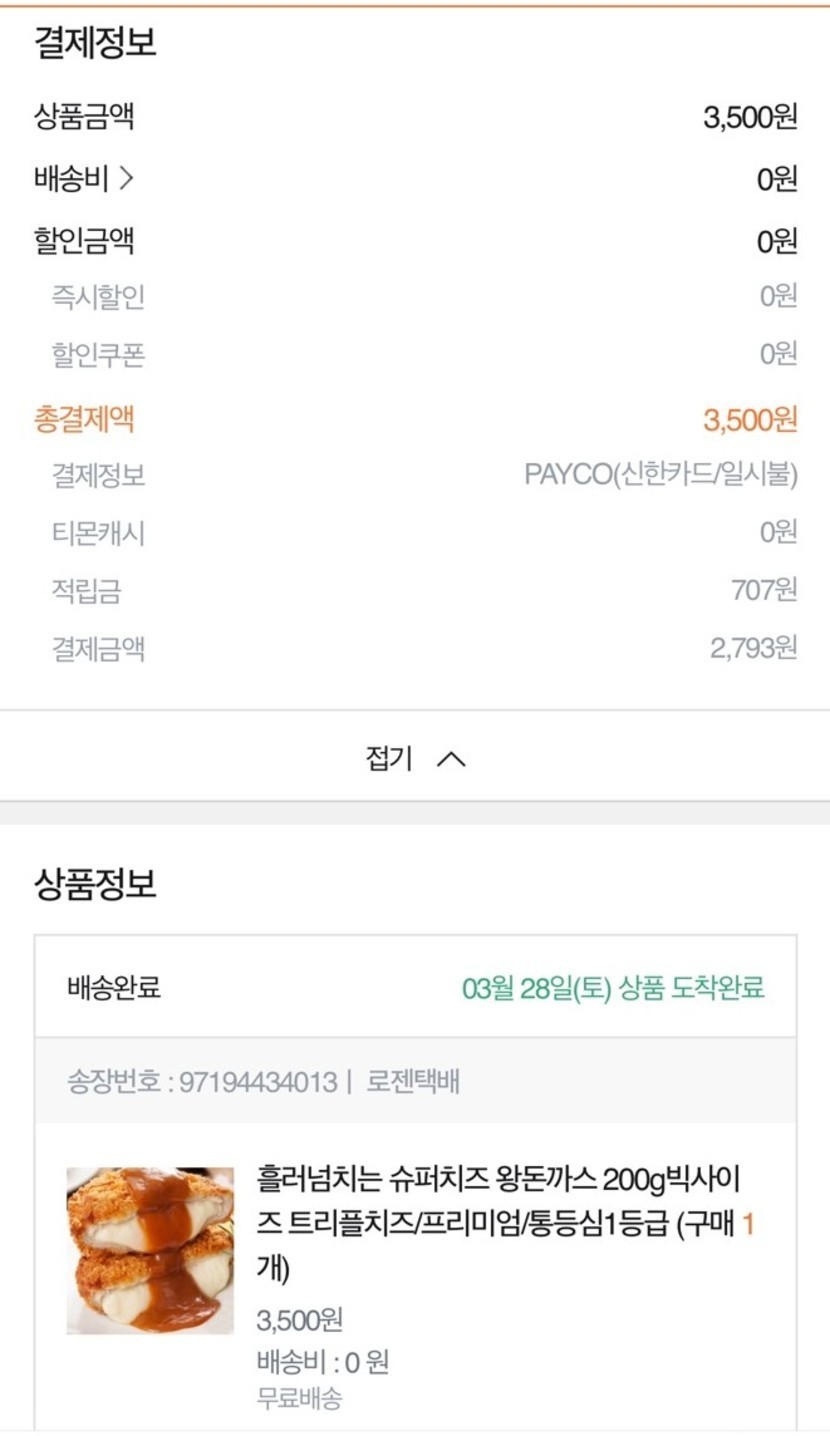 안녕하세요 :-D요즘 코로나19 때문에 집콕하면서 #집밥 많이들 드시지요? 저도 #삼시세끼 집밥으로 해결하고 있는데 메뉴 구상이 쉽지가 않아요.매번 했던 메뉴 돌려막기에는 지겨울 때도 있고 매번 식사 차리는게 여간 힘든 일이 아니예요.늘 9첩반상으로 차려먹으면 얼마나 좋겠냐마는 현실은 그렇지 않잖아요.그렇다고 라면을 매일 먹을 수도 없구요 8-8간단하게 차려먹을만한 메뉴를 찾다가 #티몬적립금 을 이용해서 돈까스를 2종류 구입해보았어요!저는 마트에서 돼지고기 등심을 사와서 직접 돈까스를 만들어 먹는 편이라(번거로워도 이게 훨씬 맛있어서요!!)돈까스를 구입해서 먹을 일이 없는데아무래도 #고구마돈까스 와 #치즈돈까스 는 집에서 직접 만들기가 어렵잖아요.그래서 이번에 적립금 탈탈 털어 구입해보았습니다!참고로 고구마돈까스와 치즈돈까스는 각기 다른 날짜에 주문했어요 :-)주문한 내역은, 이렇습니다.▶ 고구마 돈까스 2장 : 원가 7,000 원 > 결제액 4,878 원 (적립금 2,122원 사용)▶ 치즈 돈까스 4장: 원가 11,900 원 > 결제액 0원 (적립금 1,787원 / PAYCO 포인트 1,723원 / 티몬캐시 7,200원 사용)