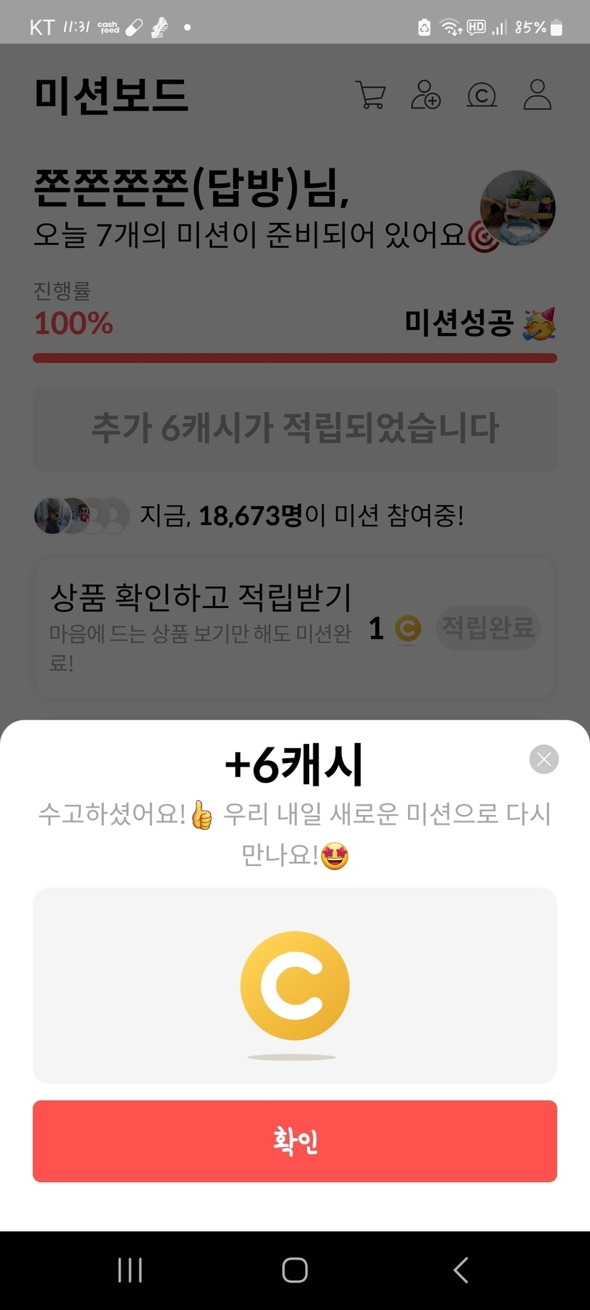 23.07.08 417 읽음 7월 7일 미션캐시 쫀쫀쫀쫀(답방) 구독하기 112 103 콘텐츠의 수익 6 한번씩 눌러주세요ㅋㅋhttps://cashfeed.co.kr/s/ERsb05 103 0 / 300 입력