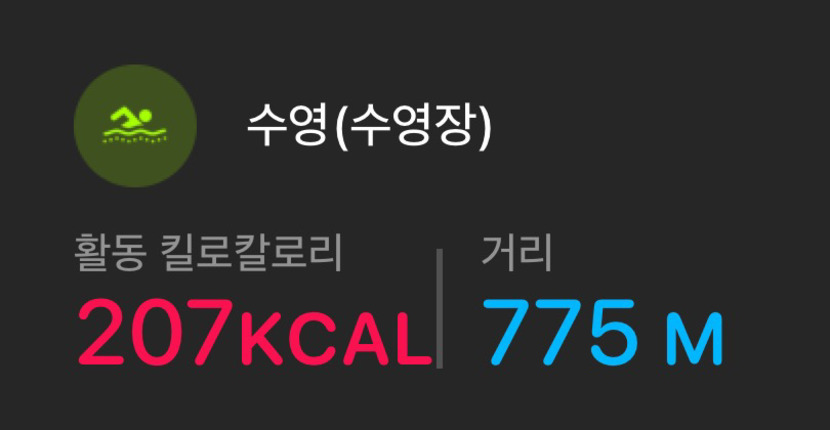 수영 필라테스 걷기 운동 완료