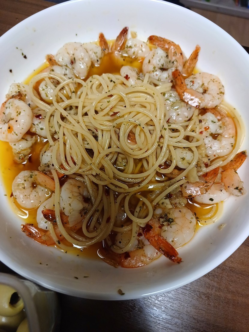 스파게티랑 새우 조금 추가해서