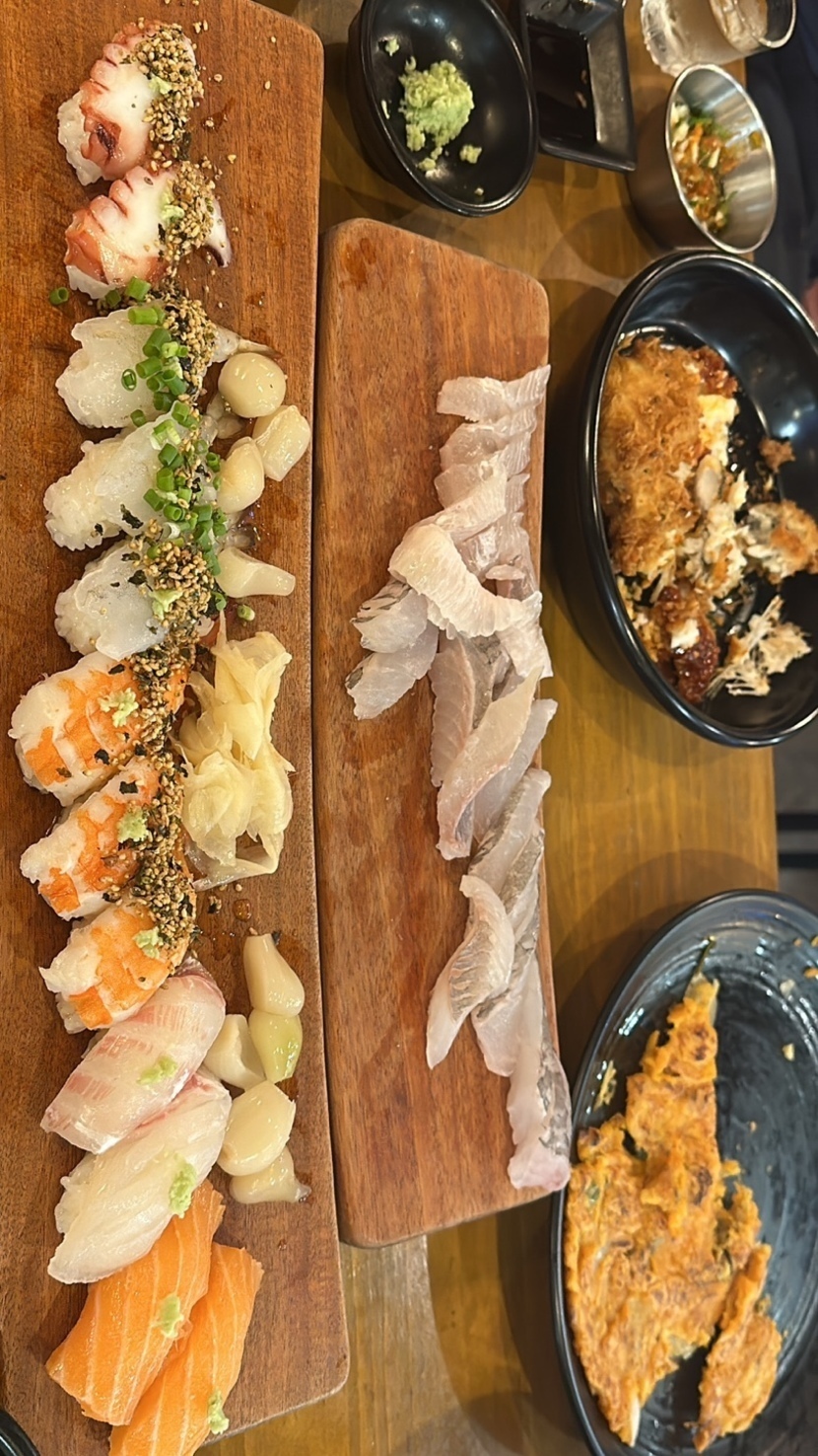 23.07.16 210 읽음 회와 초밥 플라워러브 구독하기 11 12 콘텐츠의 수익 7 딸이랑 만나서 스시집에 왔네요.미여국이랑 김치전도 나와서 정말 푸짐하게 한상. 굿굿굿 남편이랑 딸이 소주 한잔!캬!~~ 12 0 / 300 입력