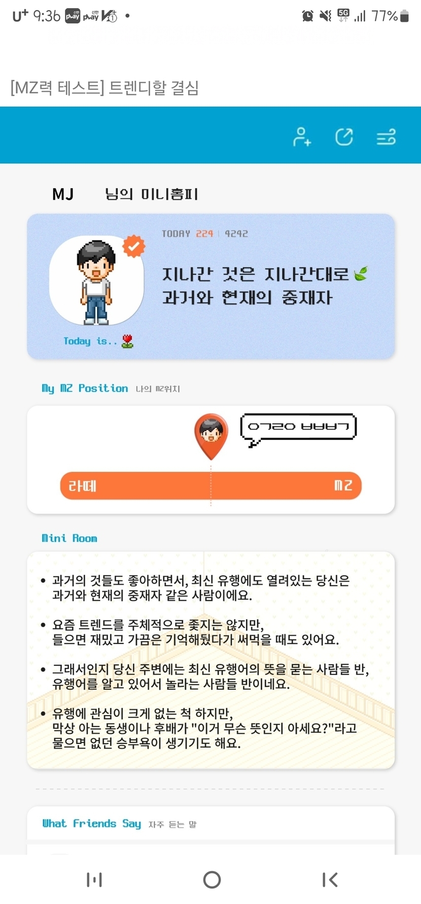나의 MZ력 테스트 결과.. ㅋ