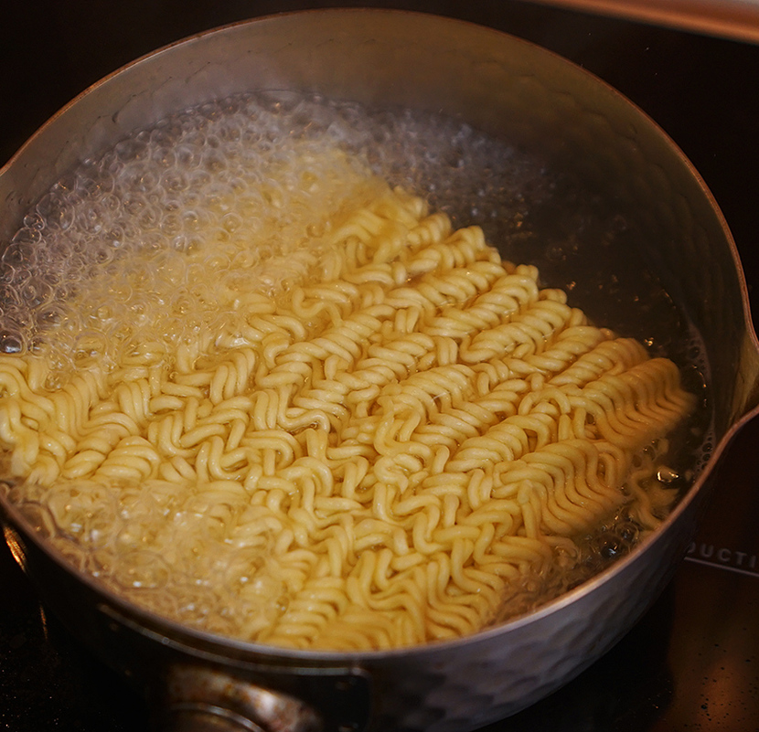 식용유, 마늘, 대파 – 고춧가루 – 남은 양념 – 뜨거운 물 – 삶은 면, 전복, 표고버섯 – 청경채 순으로 조리합니다.
