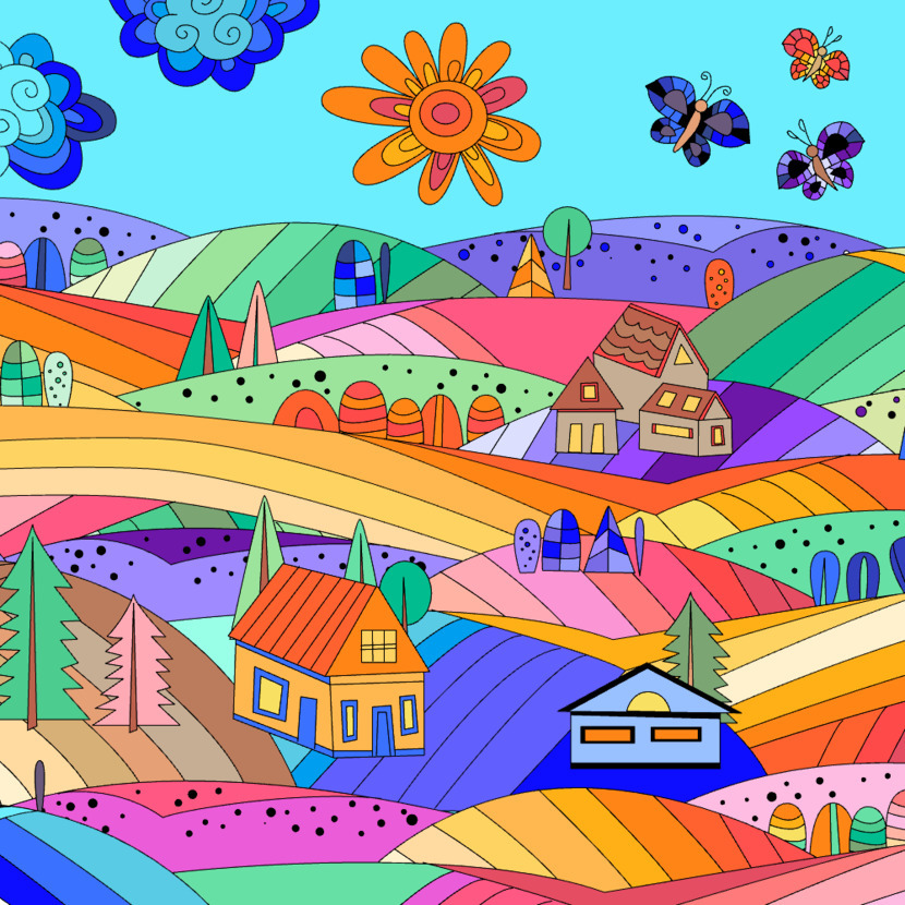 무지개 논밭. 예쁘다~