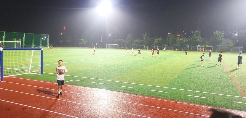 축구하는 아들 비오는디 고생이 많다