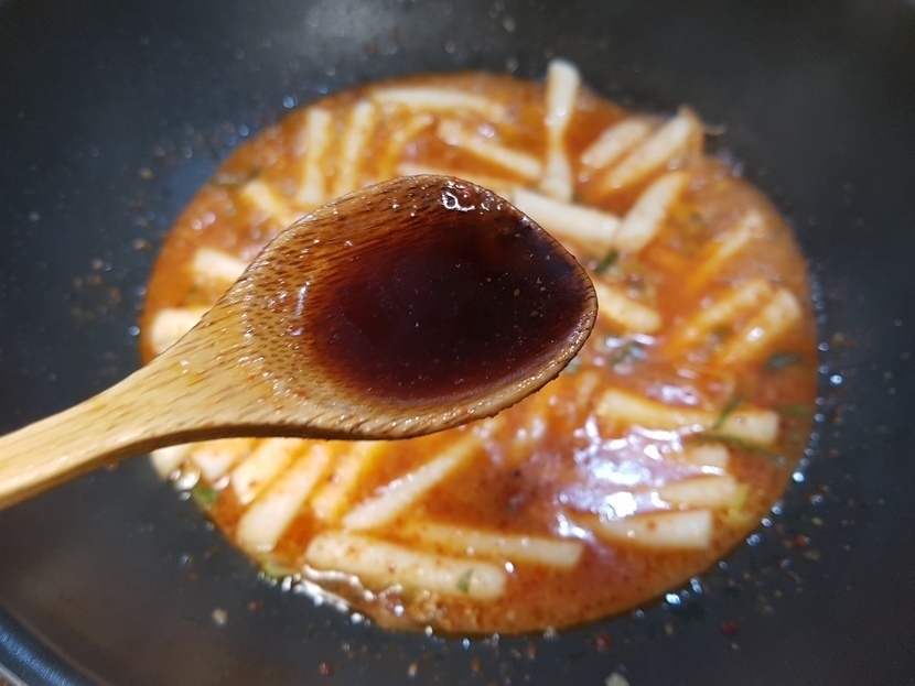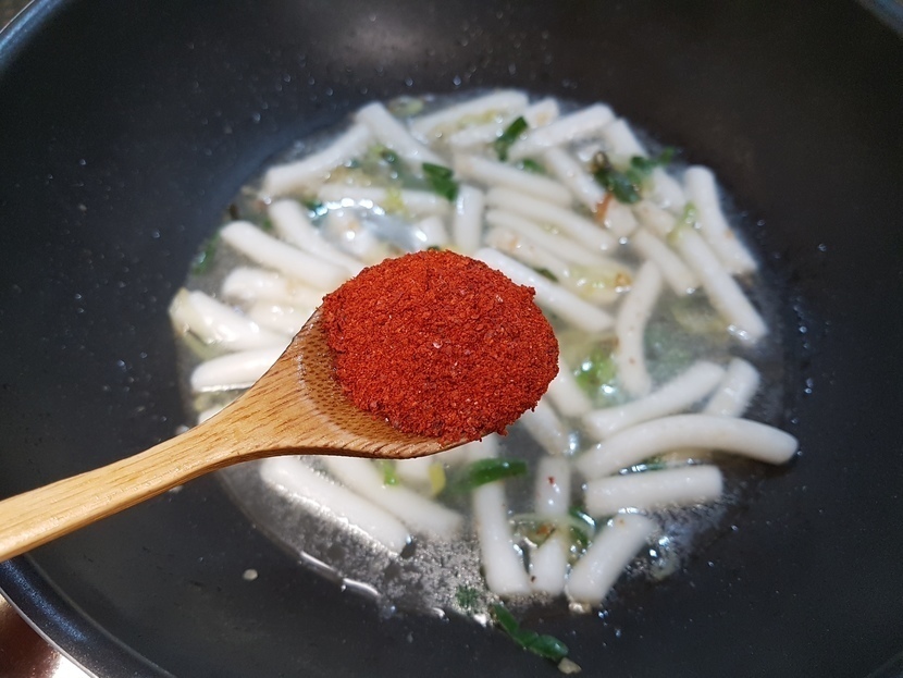 ๋ฌผ์ฟ 2์คํผ์ ๋ฃ๊ณ ๋ณถ๋ค๊ฐ ์ค๋นํ ๋ฉธ์น&๋ค์ ์ก์ 200ml ๋ฃ๊ณ ๊ณ ์ถง๊ฐ๋ฃจ 1์คํผ, ๊ณ ์ถ์ฅ 2์คํผ, ๊ฐ์ฅ 1์คํผ, ํ์ถ๋ฅผ ์์๋๋ก ๋ฃ๊ณ ๋์ฌ ์ฃผ์ธ์.